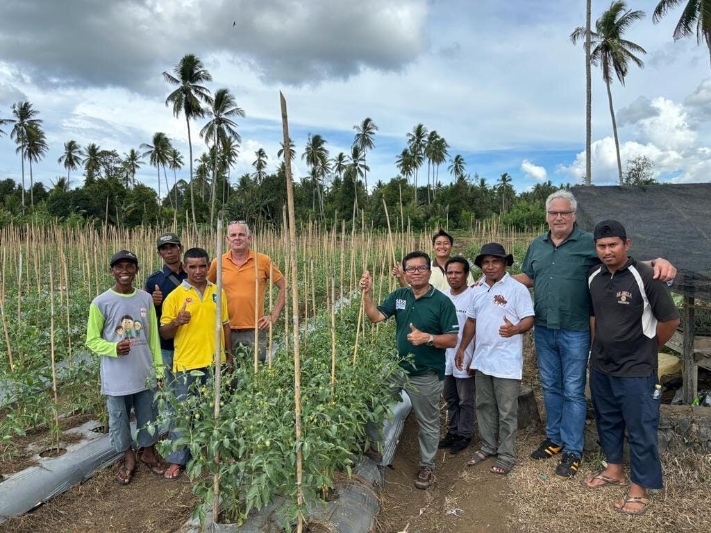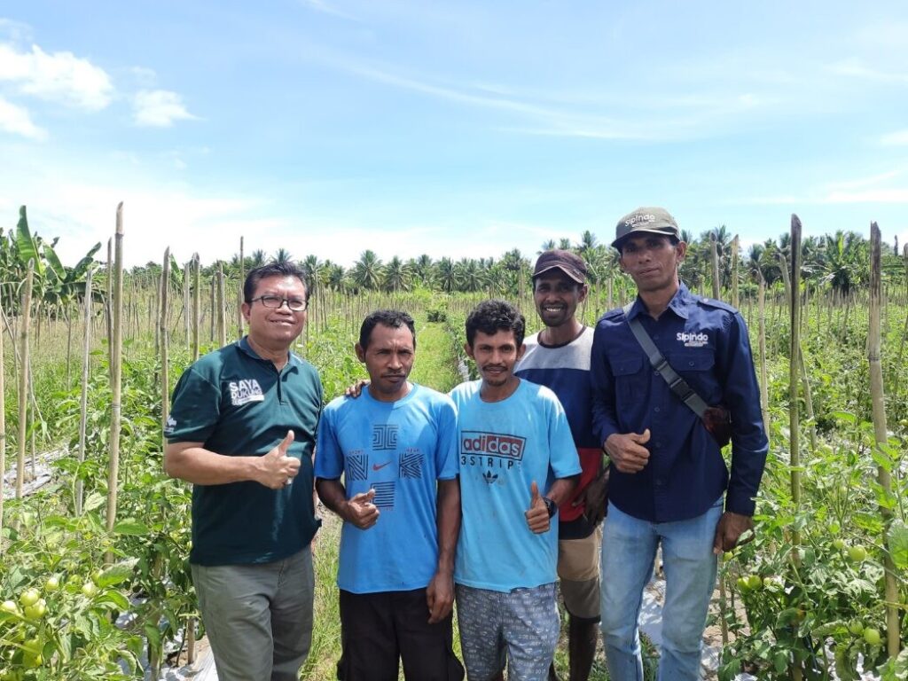 Our next stop took us to the fields of Pak Yasin Kahe in Ngidiho Village, North Galela Subdistrict, North Halmahera. During our visit, Pak Yasin was busy cultivating the servo variety of tomatoes, fetching a high market price ranging from Rp 40,000-45,000 per kilogram, underscoring its remarkable profitability. Aside from tomatoes, Pak Yasin also thrives in coconut cultivation for copra production. When Flip and Stuart asked about the comparative profitability of these ventures, Pak Yasin promptly affirmed, “Without a doubt, cultivating horticultural crops.” Laughter echoed as we collectively reveled in his response. Pak Yasin stood tall as a source of inspiration for the local youth in the surrounding community.