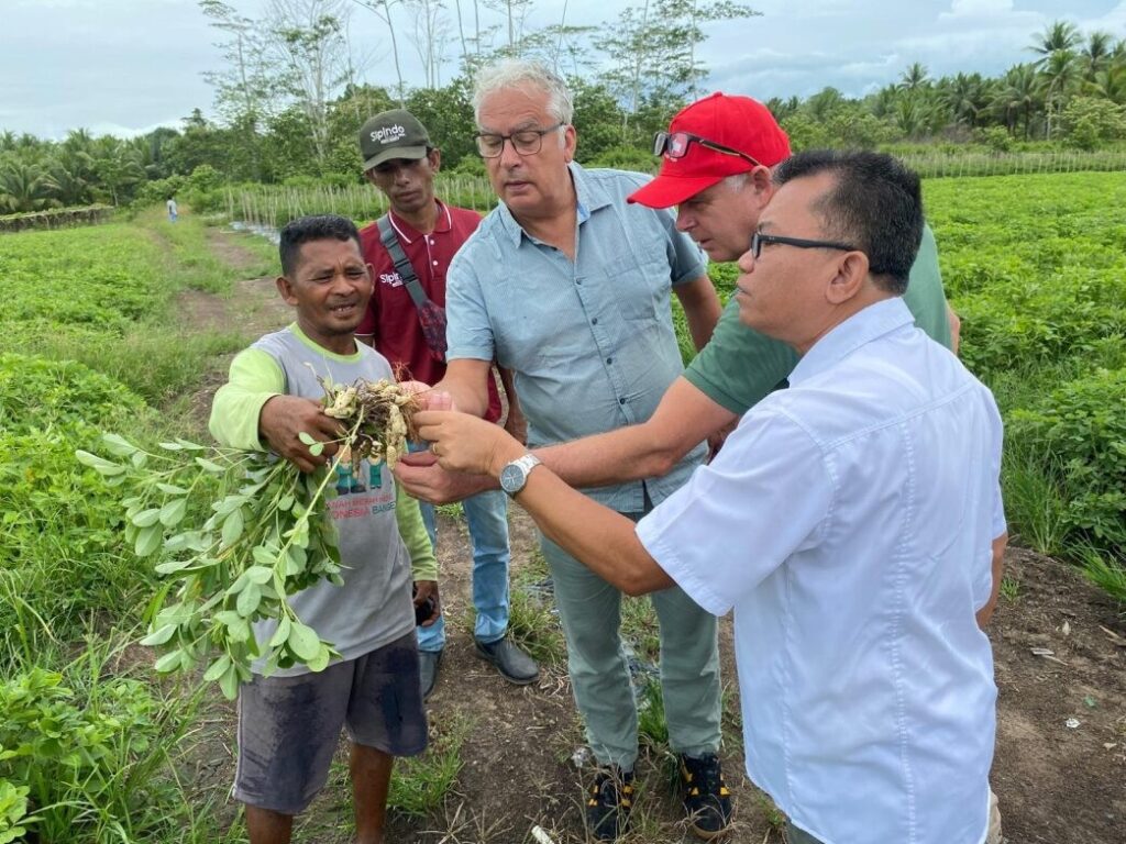 Our fourth stop led us to Pak Munir fields in Mekar Village, Kao Teluk Subdistrict, North Halmahera. Pak Munir tends to a variety of crops, including corn, tomatoes, peanuts, and chili. What capture our interest was Pak Munir’s recent adoption of crop rotation. He shared, “I used to grow tomatoes, but now I’ve shifted to growing peanuts.” This shift fascinated us as it signifies a thoughtful crop rotation strategy, benefiting both soil and environmental conditions. Stuart, Flip, and YBTS were pleased to hear this, acknowledging the positive contribution of peanuts in enriching soil fertility through nitrogen fixation.
